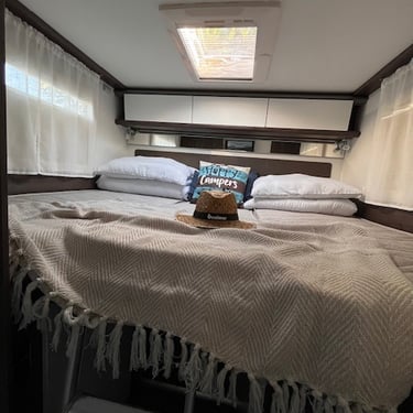 W kamperze zapewniamy kompletne wyposażenie do spania: kołdry i poduszki w standardowym rozmiarze, dla wszystkich miejsc noclegowych.